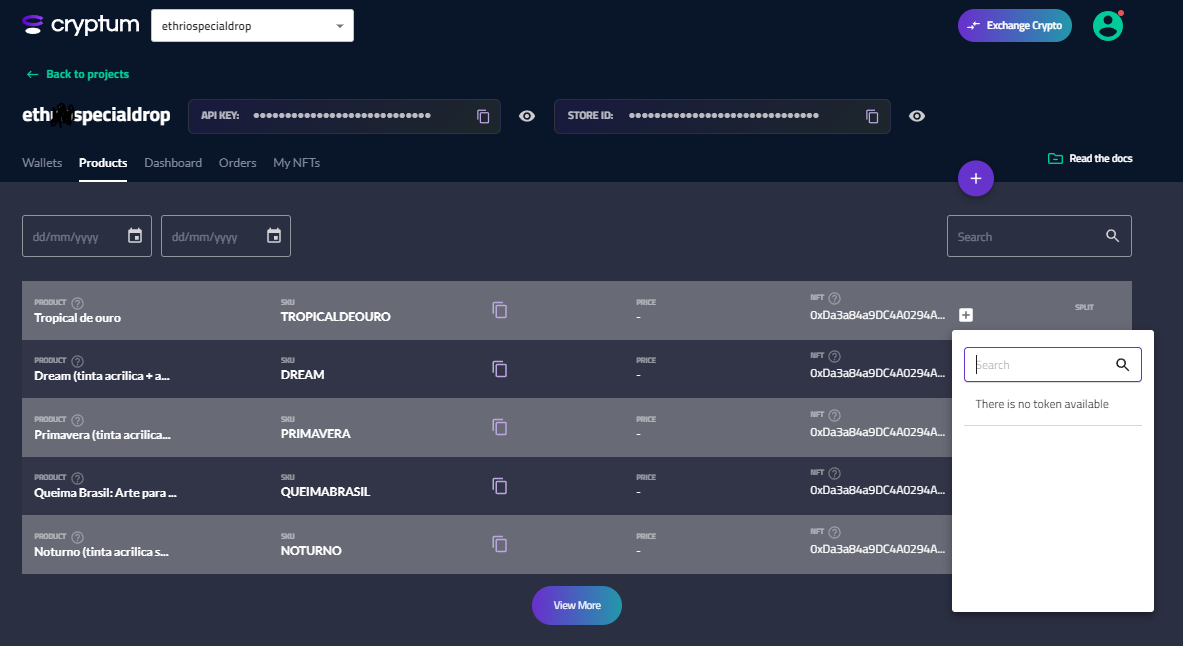 That's because to make sales and transfers of NFTs automatically in sales, it is necessary to create a link between the products in your store and the NFTs created in the Cryptum Dashboard.